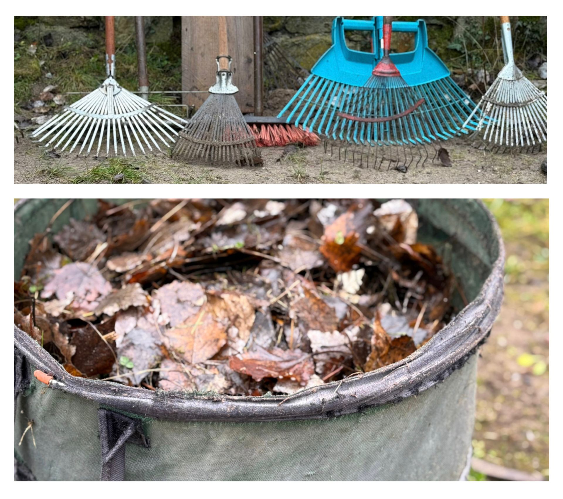 Viele Grüße von dem silbernen Rechen mit dem brauen Holz